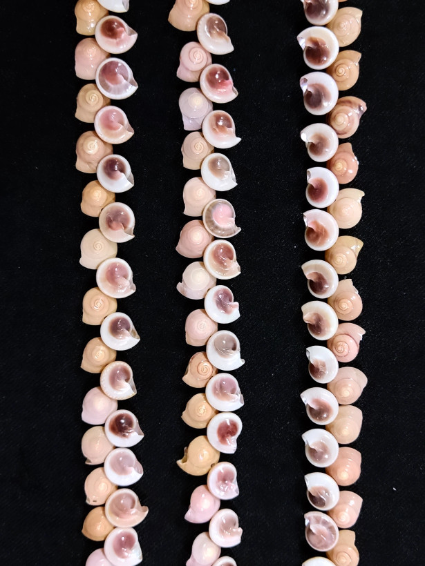 ریسۀ صدفی 40 سانتیمتری دکمهای، ساخته شده از 60 - 70 عدد صدف شسته شدۀ برّاق و بدون بو است. سوراخکاری این صدفها بسیار دقیق و حرفهای صورت گرفته و با قیمت مناسب آمادۀ ارائه به علاقهمندان است.