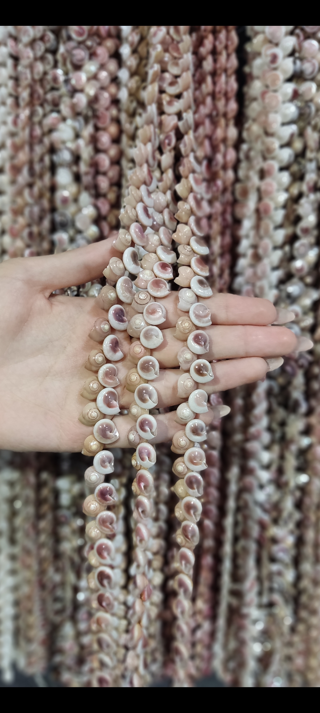 ریسۀ صدفی 40 سانتیمتری دکمهای، ساخته شده از 60 - 70 عدد صدف شسته شدۀ برّاق و بدون بو است. سوراخکاری این صدفها بسیار دقیق و حرفهای صورت گرفته و با قیمت مناسب آمادۀ ارائه به علاقهمندان است.